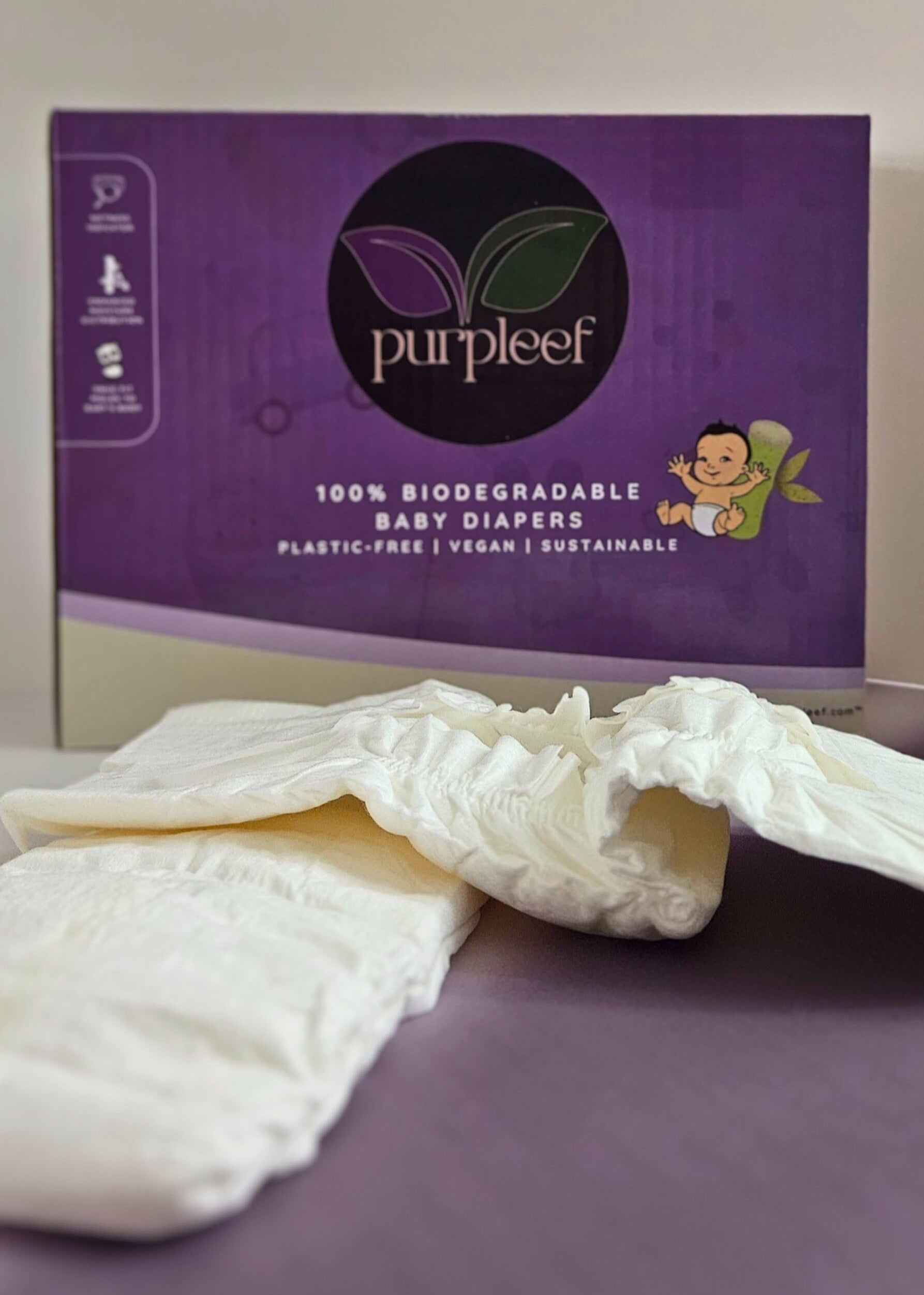 Purpleef diapers keep your baby dry, rash-free, and comfy with ultra-soft, chemical-free layers - plus they’re biodegradable and planet-safe. Plastic is harmful, lets keep it away from our little ones